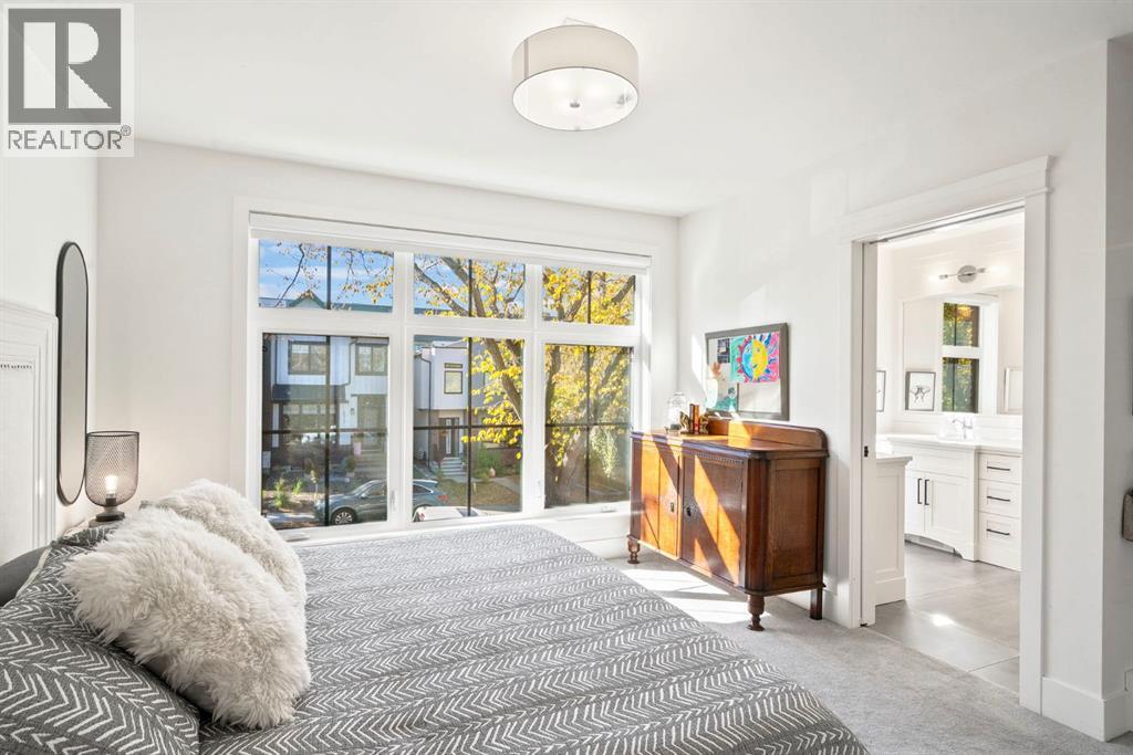 This one is SPECIAL! Custom-built by established/respected Braemyn Homes & designed by Dean Thomas (a Global Leader in Design!), this rare home stands apart from other semi-detached options available in SW Calgary. Prepare to be WOWED inside & out. The minute you drive onto the street - lined with mature Elm trees...you will feel at HOME. Elegant, timeless Brownstone exterior with real full sized brick & concrete lintels. Wait till you see this home at night - Gemstone lighting on home/garage=magical effect! Extensive work & investment went into ensuring the exterior of this home - reflects the amazing interior! This home offers a LIFESTYLE uncommon in Calgary...the ability to enjoy your outdoor spaces year round! Walk up your extra wide concrete walkaway, while you appreciate the beautiful, low maintenance landscaping out front. Inside front door, you are greeted by high ceilings, open concept timeless design that allows light to travel from EAST - WEST & white oak hardwood floors! Custom lighting options and window treatments throughout. Entertaining family or cozy nights at home in front of gas fireplace - all can be accomplished in this space. Kitchen is a chef's dream with UPGRADED Appliances - Monogram Fridge, 48" Monogram gas/electric stove + POT filler! HUGE QUARTZ Island w/room for casual dining or company while you cook/bake. TONS of cupboards/storage. Kitchen built at back to allow easy transition outside via door or patio sliders - directly to deck space to dine, BBQ (gas line), host sports parties, family events or enjoy quiet evenings in front of the fire! 2 piece bath & mudroom space complete this level. Double finished garage is insulated/drywalled with epoxy floors. Head up your Hardwood stairs to second level & find TWO amazing suites - both with large bedroom areas, beautiful ensuites & closet spaces! One stands out w/heated ensuite floors, dual sinks, stand alone tub and HUGE shower. Laundry w/sink & direct hamper access to walk-in closet! The T HIRD level is all about OPTIONS! Use as extra space for relaxing, entertaining, WORKING. OR transform it to a THIRD bedroom. 2 piece bath on this level. Could achieve an incredible THIRD FLOOR PRIMARY suite if desired. Private balcony on this level offers CITY views! Set up for future hot tub installation. There is even a fully finished basement space! Offers another BEDROOM, 5th bathroom, flex space, dedicated Wine Room & tons of storage. School at end of the block! The home is steps to Marda Loop, Westhills & LRT. 37th ST revitalization adds new trees, bike paths to North Glenmore Park & downtown + easy access to amenities, dining, coffee shops, shopping, services - creating a vibrant, walkable neighborhood with a feel similar to Marda Loop! It's impossible to describe this incredible home to its full potential w/limited characters! Get downtown or out of town quickly! You TRULY need to SEE this HOME in person! List of upgrades in photo carousel. Book your showing today! (id:2469)