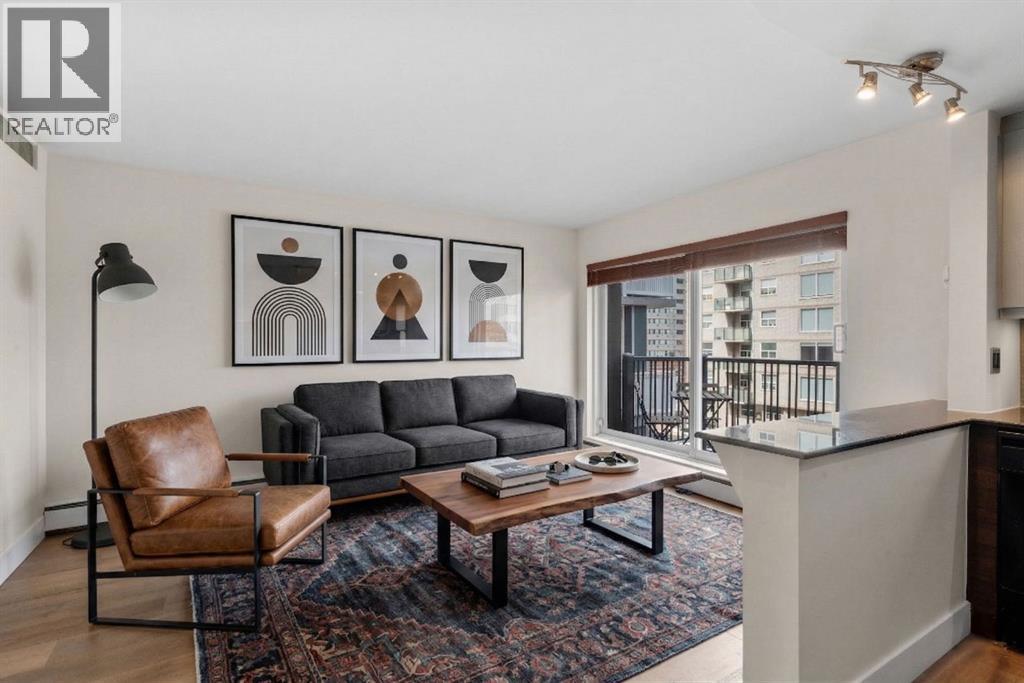 TOP-FLOOR CORNER UNIT - IN ONE OF DOWNTOWN'S BEST LOCATIONS - STEPS TO 17TH AVE! Set on one of the most desirable streets in the Beltline area, this location delivers unbeatable walkability. Just steps to 17th Avenue!! You will be surrounded by Calgary’s top restaurants, cafés, fitness studios and boutiques - all within a 5-minute walk. Quiet, tree-lined and incredibly central, this building is on a street that offers both energy and calm. Located in a well-maintained small (only 16 units!) CONCRETE building, this TOP FLOOR, corner unit offers added privacy with no neighbours above you. This 4-level walk-up is known for its solid construction and quiet living. Secure FOB access gets you in the building. Inside, you’ll find NEW HARDWOOD floors throughout, BIG closet at front entrance. This unit maximizes the space - 484 sq ft - and feels big and open! Functional 1 bedroom, 1 bathroom layout with TONS of natural light. Enjoy cooking in your kitchen with lots of counter space (GRANITE!) PLUS a great sized window above the sink! Open concept. BALCONY. Nice sized bedroom with AWESOME closet space and glass sliding doors. Barn doors, baseboards, lighting, handles and cabinet coloring - truly make this unit feel updated and modern! LAUNDRY IN THE UNIT! Brand new washer/dryer. Soaker tub. PET-FRIENDLY building (with board approval) - no size or breed restrictions - makes this a rare find for pet owners in the inner city!!! Condo fees include heat and water. An ideal opportunity for those seeking inner-city living with exceptional walkability, privacy and long-term value. Don't have a car? You can literally WALK/BIKE everywhere....But this unit comes with assigned parking! Work downtown? Enjoy the benefits of inner-city living - with reduced commute times = come home for lunch or take the dog out! Transit is close - 2 bus stops within a two min walk. Perfect for young professionals, first-time buyers or investors! STOP renting - pay your own mortgage i nstead!!!! NO POST TENSION CABLES! SHORT TERM RENTALS ALLOWED WITH BOARD APPROVAL! (id:2469)