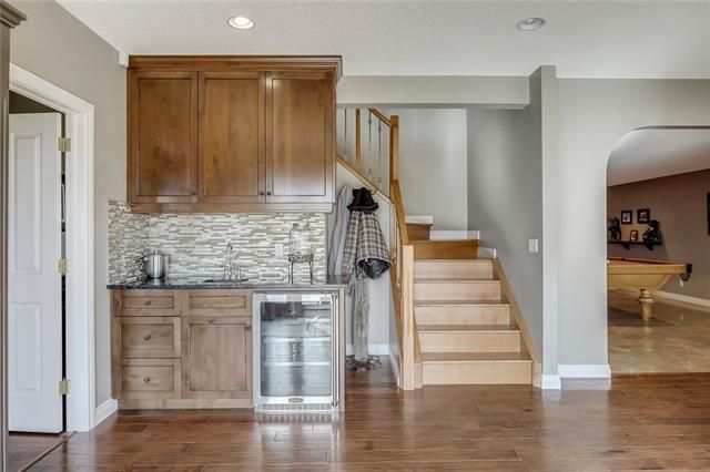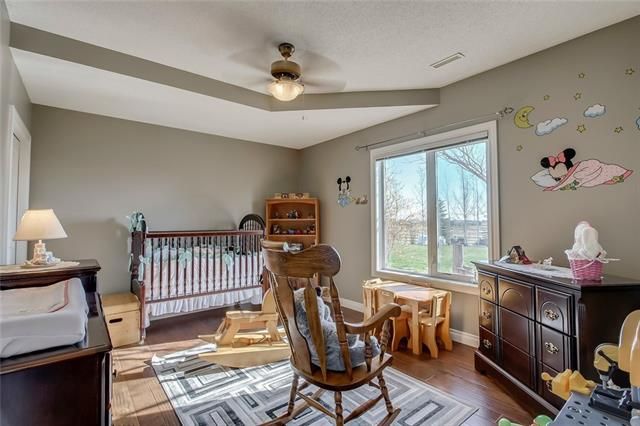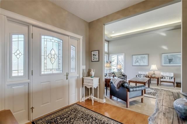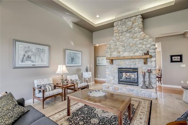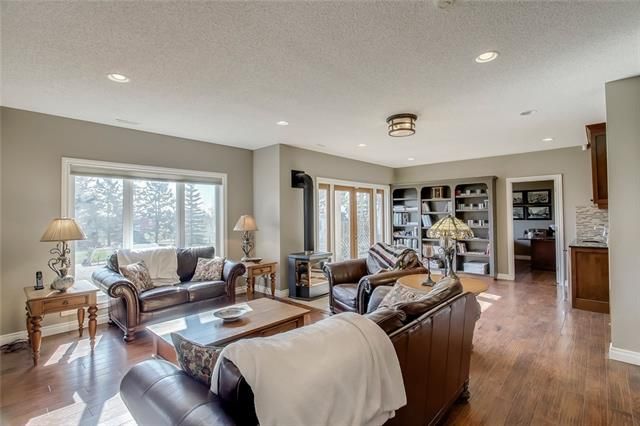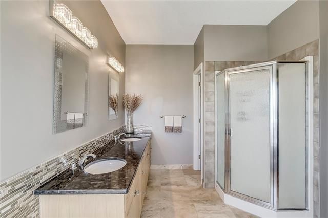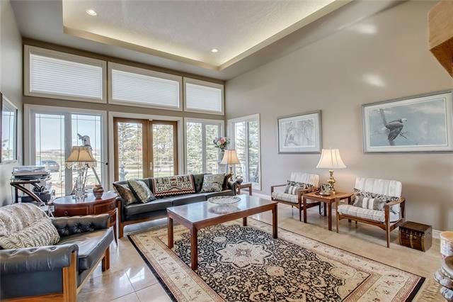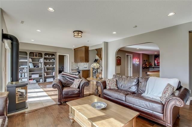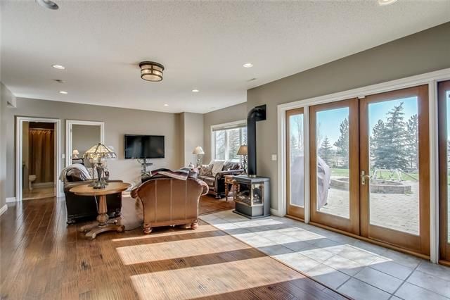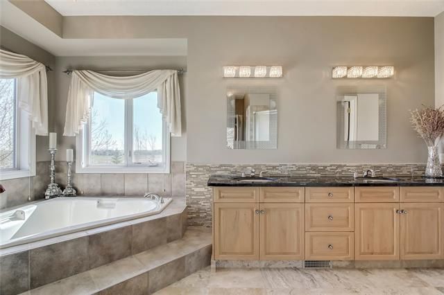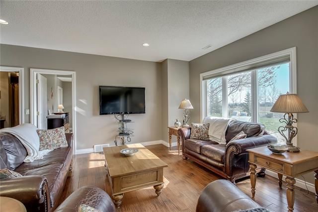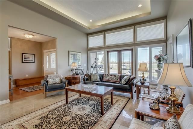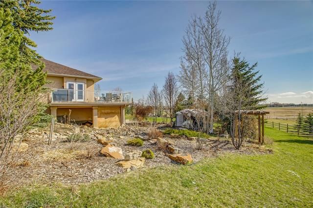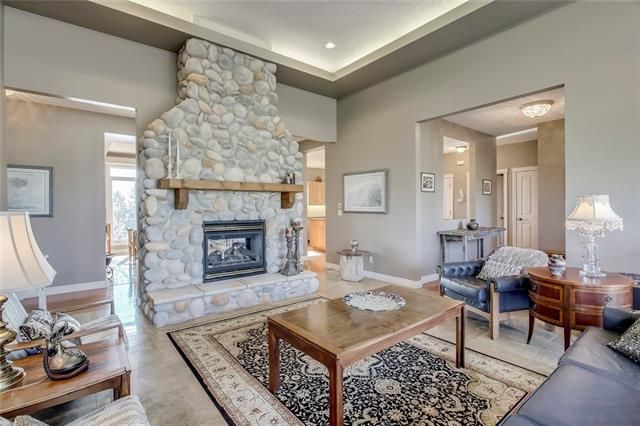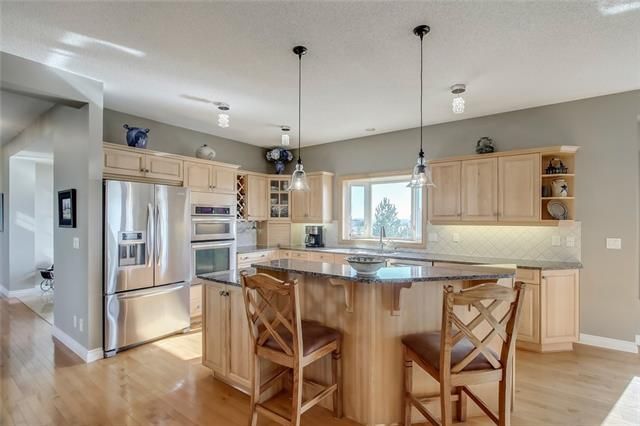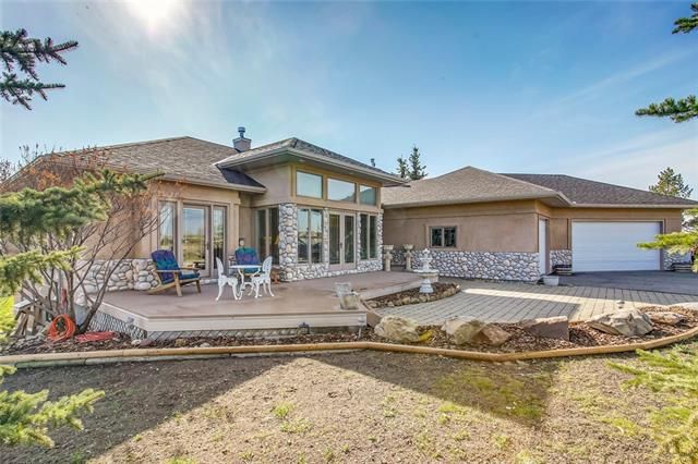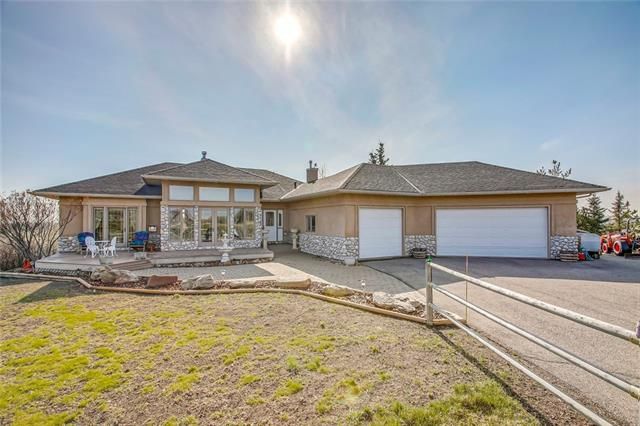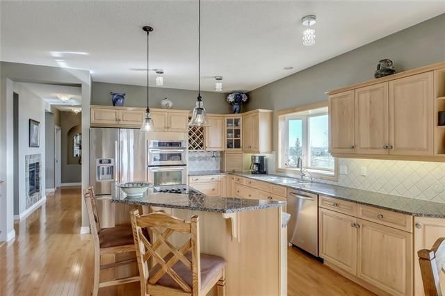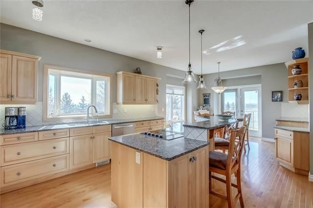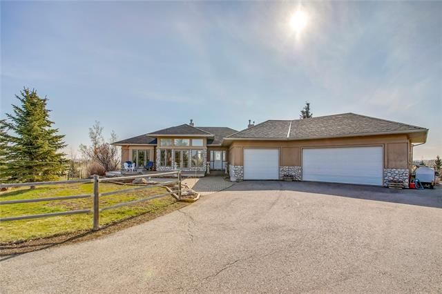 Custom built ,fully developed walkout bungalow with a most impressive triple attach. garage.Ultimately designed for a couple(with older children)or individual..with all the space where it counts..on the main floor..beautifully appointed master suite and 5 pce ensuite spa bath,"Great"front living room with soaring vaults and double sided fireplace to the formal dining rm,gourmet kitchen has center work island with electric cooktop.Hickory cabinets, granite counters,Maple hrdwd flooring, gorgeous marble and travertine flooring- no carpet on the main floor ! For the extended family the lower level boasts a"family" size family room,spacious games/rec rm,2 bedrms, full bath plus a den/office.Dble garden doors lead to the patio with hottub and gather "round me" firepit further enhanced by manicured landscaping. Pillared power front entry security gates,paved drive to ample parking(even a reserved spot for your RV) Preserved wood rail fencing.Mntn & city views PLUS a stunning Eastern morning SUNRISE view.