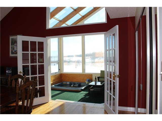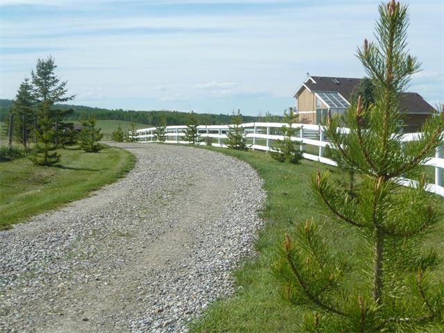 Contemporary 3125 sq. ft. 2-storey on 10.5 acres which provides a stunning departure from the ordinary !! Open concept with soaring ceilings and loft which provides for a luxury master suite, office, library and then bonus room over the garage. Large all glass Atrium with built in Hot tub. Hardwood,tile and carpet plus freshly painted. Enjoy an unobstructed view of Hidden Lake and abundant wildlife !! Set up for horses including a grass riding ring,paddocks and 2 large X-fenced pastures. Live the Rural Lifestyle only 10 short minutes to city limints and 4 minutes to fine dining at Priddis Greens Golf and Country Club !!! Paved access right from Calgary to your front gate. Potential for Future Subdivision....Don't miss out ,be the First , Call now !!!