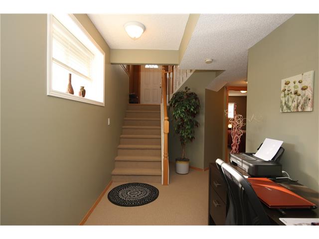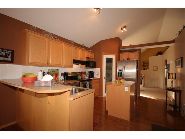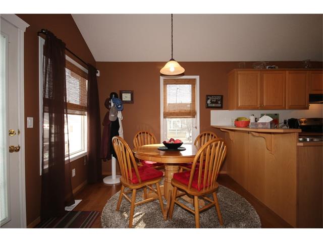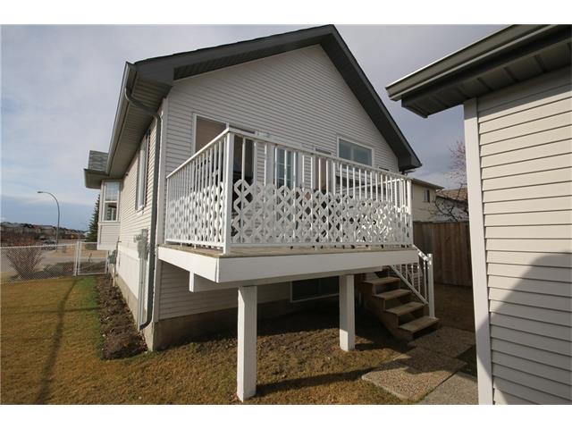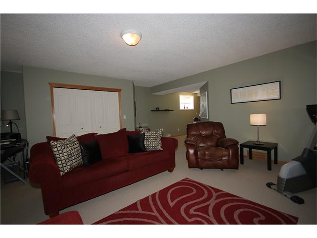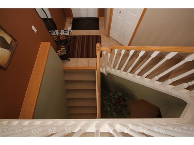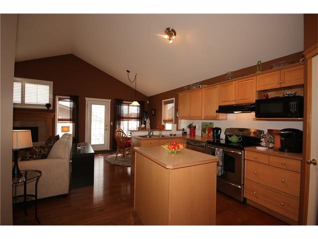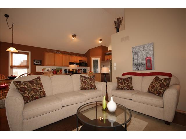 Immaculate former Morrison Show Home. Perfect for the empty nester or first time buyer. Great starter home. This home has been professionally painted in designer colours to accent the vaulted ceilings in the entrance foyer, the dining room, the kitchen & living room which adds to the spacious airy feeling. Open concept kitchen features breakfast bar and eating area looking into the cozy living room with tiled gas fireplace. Loads of windows throughout main floor including bay window in separate dining room floods the rooms with natural light. Master bedroom features wall to wall his/hers clothes closet, picture window overlooking green space and playground, plus ensuite with jetted tub and glass shower doors. 4 pc main bath and 2nd bedroom complete the main floor. Lower level finished with large family room with corner tiled gas fireplace for those cozy evenings. The 3rd bedroom is spacious with a walk in lighted closet. There is another 4 pc bathroom in lower level