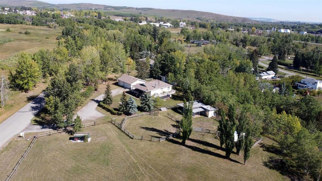Vintage Country with character and some updates already done as a bonus head start for you to move in and enjoy ! *** City blocks only for a nice stroll to shopping or dining out -- Plus a park with jogging paths right across the street *** 5.25 acres in the Town of Turner Valley ( Diamond Valley) .......That's right .... an acreage for your horses and the land investment for future development. Was sold subject to the sale of another property but now back on the market.--- NEW PRICE .....September 8th -- The setting and location is so very special and must be walked to be appreciated ! Almost half is a treed meadow area of privacy and seclusion below the ridge that you can't see from the drive by. Serviced with TOWN WATER ! But your own septic and field service. Newer triple (double) garage with work shop area. Various other convenient out buildings for ample storage and shelter for the horses. AND now for the cute Heritage style fully developed walk out bungalow .... you have to see it to appreciate it's present comfort or the potential you see to develop for your own personal life style but it's perfectly fine just the way it is now ! With possible subdivision it would be the perfect home to live on site while you built your brand new home on the balance. So much potential and the prettiest setting ever ! Thanks for viewing and call now to see in person. Imagine owning your very own Acreage " IN TOWN" .......