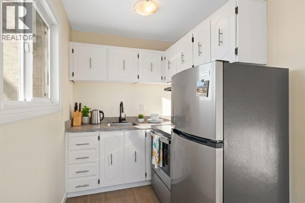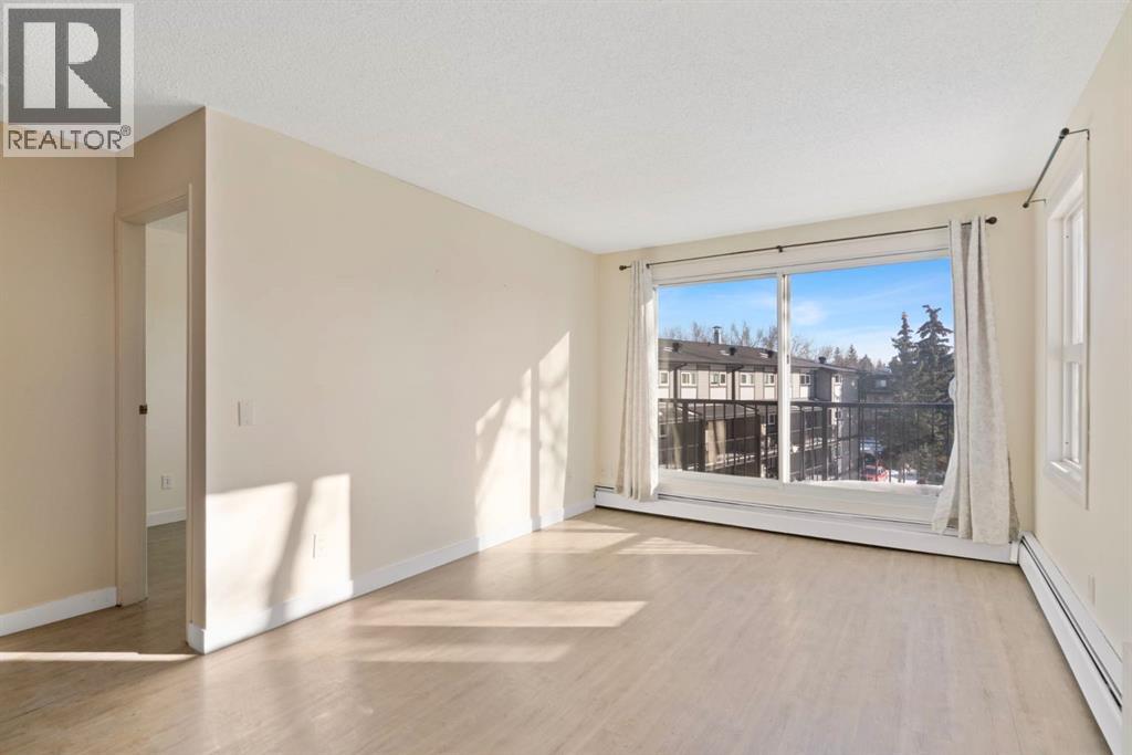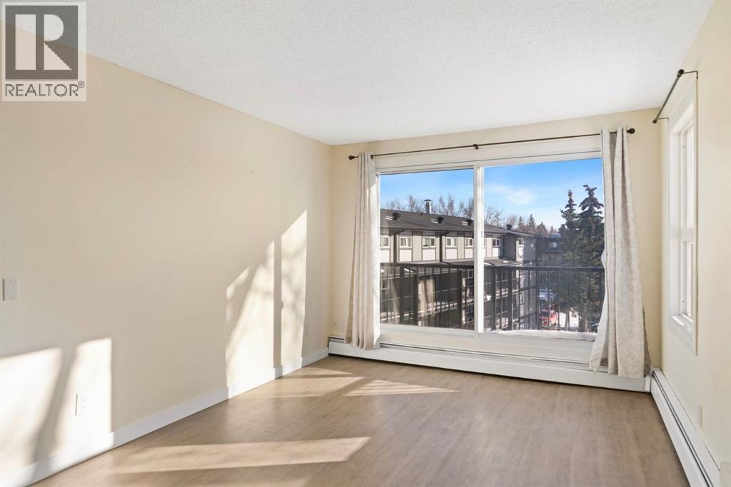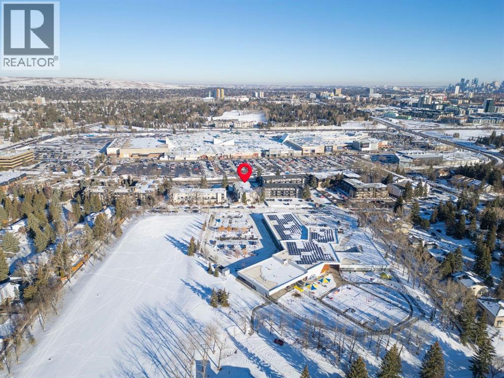 TOP FLOOR. SUN-FILLED. WALK EVERYWHERE. LOCATION LOCATION LOCATION!!! Market Mall is ACROSS the Street = groceries, shops, restaurants, services, coffee shops, theatres. 5 minute drive to U of C or walk in 25 minutes or 2 minute walk to bus stop = arrival at U of C in 10 minutes! Bow River Pathway is a block away - extensive, year-round paved and multi-use trails for walking, running and cycling! Rare opportunity to own in this quiet, well-kept building. NO sales have occurred here since 2024 - makes this a great opportunity to find the perfect place to live - and a solid stable community to live in. This BRIGHT - CORNER 1-bedroom, 1-bathroom unit sits on the TOP floor, meaning no one above you. Exceptional East-South-West natural light throughout the day. Enjoy a large private SOUTH facing balcony off the living room, unobstructed sunshine into both the open concept living/dining space and the bedroom. PLUS enjoy mountain views from your kitchen window! The layout offers generous in-suite storage (bikes, boxes, or use as pocket office area) and ample closet space. IN SUITE LAUNDRY. This unit is VACANT and move-in ready. LOW condo fees that include assigned PARKING, HEAT & WATER - keep ownership affordable. This is an exceptional opportunity for a first-time buyer, someone looking for a quiet haven in the city or an investor ( NO Short Term rentals under 28 days allowed. ) Have a PET?! Board approval necessary but no weight, breed, size restrictions. Own for less than many rental payments - while building equity in one of Calgary’s most connected communities! Quiet building. Top floor privacy. Sunshine all day. Location that works for real life. Faces Christine Meikle School - so many days/months of the year - you have no neighbours! Plus the road is blocked right in front of this unit (can't drive straight thru on 50 St) - so LIMITED traffic noise below! Perfect QUIET space to study or relax. Varsity gives you inner-city access without inner-c ity chaos! Close to major roadways. Airport is 25 mins away and drive Downtown in 10 mins (without traffic of course!) Get out of the city quickly - Canmore is an hour away! Mature trees, strong schools, walkability and long-term value. Varisty is one of Calgary’s most popular communities. Some photos are virtually staged. Call today to view - or book a showing! (id:2469)