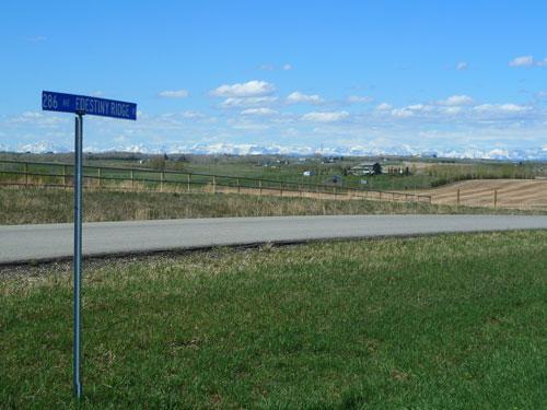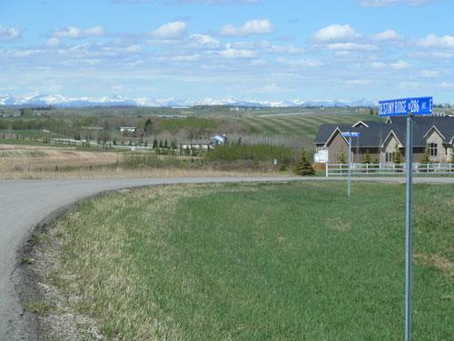 Next to and overlooking Prestigous Destiny Ridge Estates...only better!..with NO building restrictive coveneant.This is the absolute best of the best with location and views that are second to none. The white capped Rockies span the entire western skyline and to the north a panoramic view of Calgary from Canada Olympic Park to Chestemere. 4 acres with a gentle slope and lot's of room to grade a walk-out. Excellent well and flow rate of 5 gpm @ 175 ft. Bring your architect or your plans and builder, this lot is fully sub-divided and ready to start building on immediatly.Don't miss out, this is the last lot to have such a prime lcation,..setting and view..everything adjoining is sub-divided and developed with quality custom Estate homes.Call for directions and be prepared...this will be YOUR HOME SITE and DREAM come true...AFTER all your patience, waiting for the right opportunity to finally present it self!!! GST apllicable