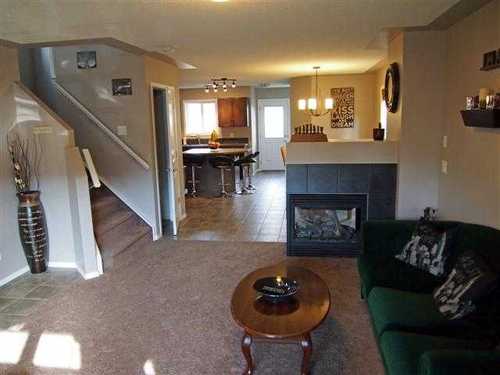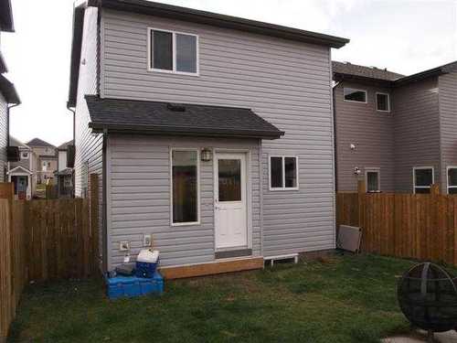 Wonderful young family home in new area w/construction almost complete. Great plan, over 1450 sq ft, only one year old and tons of upgrades. Good curb appeal, stone and aluminum railings on front veranda. Nice entrance, spacious great room, big windows for added natural light and three way fireplace separates the nook/kitchen from the living room. Tile flooring in the foyer, mud room, 2pc main floor powder room, kitchen and nook with matching blacksplash plus a corner pantry. Contrasting countertops and rich cinnamon finish on the shaker style maple cabinetry with brushed nickel hardware. Upstairs are three good bedrooms, master has room for a king plus it has an ensuite and walk-in closet, the second and third bedrooms also feature walk-in closet creating excellent storage plus another four piece bathroom up. Neutral colors, 9' ceilings with bordered spantex finish add a touch of class. The lot is landscaped and fence in place for your children or dogs. Home is in great condition with quick possession.