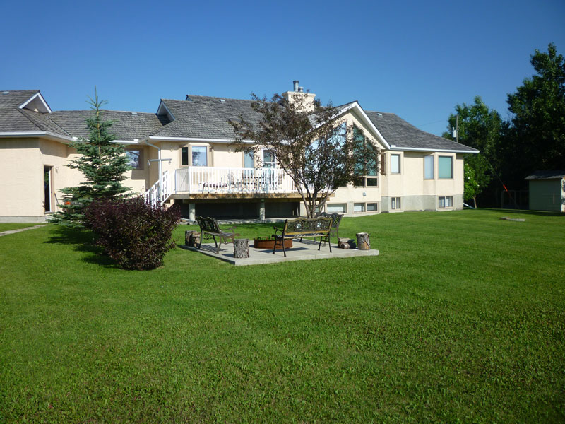An Oasis of landscaped perfection and peaceful seclusion awaits you that is almost within walking distance of Chestemere or 12 short minutes to Calgary shopping!Custom built to the exacting specs and design of the original owner,this exceptional family home is a shinning example of how a home should be built.Step down family room with vaulted ceilings and windows right to the peak to capture all of the mountain views to the SW.Chef's " delight" kitchen with center work island and newer stainless steel appliance package.Hardwood and Tile flooring thru out.Hand crafted on site solid Oak cabinetry. Mn floor laundry.Second kitchen(with gas range) down plus huge rec room that part of would make a great Home Theater!Convienent and practical walk up entry from the lower level to the oversize triple attached garage.Paved drive plus country size paved parking for the kids or guests!4 acres of trees,trees and more trees but lots of lush green grass for the horses if that's your need.Truly a Must See Country Escape!