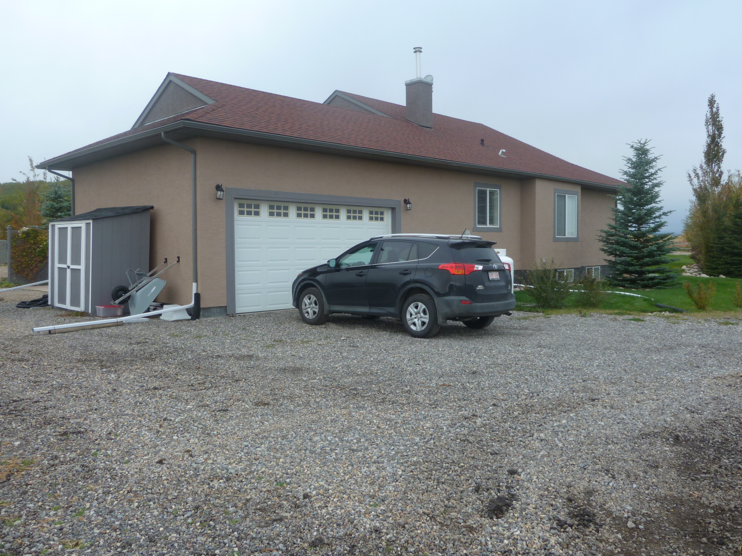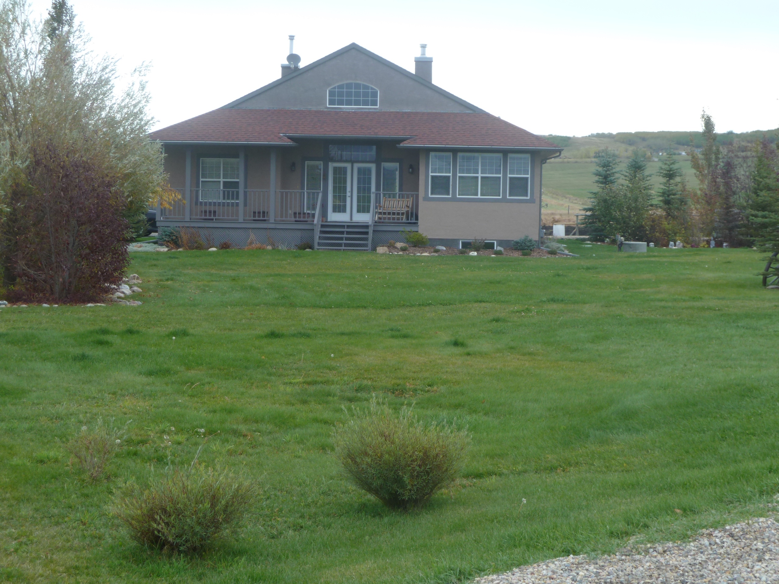 A COUNTRY GEM that shines like a Brand New home and decorated from top to bottom like a Showhome !! Honestly you have to see for yourself how cozy, comfy and clean this gorgeous home really is ! Open floor plan with soaring 17 ft.ceilings and gleaming hardwood floors thru out.Free standing air-tight wood stove that adds a real country feel to the main floor Great room.Gourmet kitchen with Maple Cabinets and granite countertops.Large center work island. Gas stove.Fully developed with a total of 4 bedrooms and 3 baths.Lower development is enhanced with oversize windows giving a nice bright and airy feel.Front veranda and sheltered stamped concrete patio at the back to enjoy BBQ's with friends and family! Oversize Double attached garage is insulated and drywalled.Standby GENERATOR is all wired in and ready to go if the power ever goes off.Brand new MOUND septic field. Nicely landscaped with mature trees and shrubs.180 degree PANORAMIC MOUNTAIN VIEWS. AFFORDABLE bargain would be an UNDERSTATEMENT !!!
