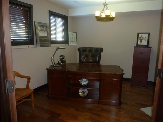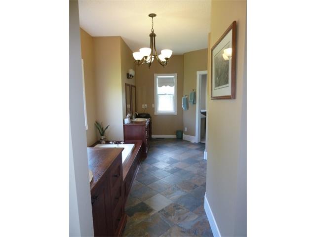 This fine country home is gorgeous but the Deluxe shop is even more inviting!! Quiet and private treed setting with a view to the mountains and pond.Power front entry gate...first to the 2400 sq. ft.fully finished steel(inside & out)shop with 2-12'x14'overhead doors, 140,000 BTU's radiant heating,ceiling & wall fans,full 3 pce bath with shower/tankless hot water,separate septic system,60 gal. air compressor with attach. plus each side has covered 45'x15' RV/STORAGE.Oversize kids play/gymset & for the whole family, year round enjoyment,a fully enclosed gazebo with hot tub.Triple attach. heated garage leads to....the Great room style Kitchen with center work island,sunny south side breakfast nook,3-sided gas fireplace & spacious open family room.Formal dining room with adjoining Library.Front parlor with cozy woodburning fireplace.Main floor laundry. 4 bedrooms.3 full & one half bath.Fully developed lower level. Special home in a special country setting up on the hill south of Dewinton & west of Mcleod Tr