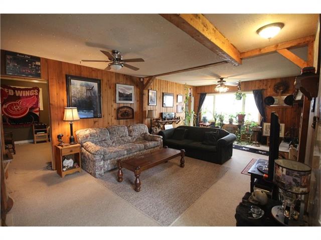 WOW! WHAT A GORGEOUS YARD!! This well kept bungalow offers a ton of character with a huge country kitchen & eating area. The spacious living room features a cozy wood burning fireplace for these very cold winters we still get. Also on the main are 2 bedrooms & office/den that could easily be converted into another bedroom. Both the master & den have access to the covered back deck and hot tub. The basement includes a 4 pce. bath and needs some finishing to complete the huge bedroom & family room. There is ample storage in the mechanical room with washer, dryer and sink, newer furnace and new hot water tank, more storage under the stairs and also a cold room. The oversized single garage features 8" thick concrete pad & Fir plywood, 3 1/2" insulated walls. Lots of updates and upgrades thru the years. New R50+ Fiberglass Insulation in Attic installed Feb. 3/17. Large lot, close to all amenities. Please check out the pictures of the beautifully landscaped yard. Exceptional!