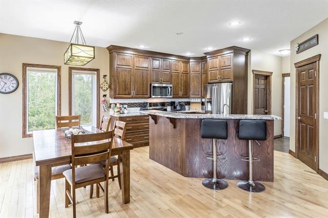 ORIGINAL OWNER -- CUSTOM AND QUALITY BUILT --- 2010 --- *** THE *** VIEW !! *** THE *** SETTING --- AND LOCATION *** UNBELIEVABLE PRESENTATION OF 6.98 ACRES WITH 2075 SQ.FT. + 1872 SQ.FT. DEVELOPED WALK-OUT ** IMPECCABLE RANCH STYLE BUNGALOW !! TRIPLE ATTACHED GARAGE AND SEPARATE MATCHING STORAGE/SHOP. A PERFECT BLEND OF TREES AND PASTURE FOR YOUR HORSES OR JUST TO ENJOY NATURE AT IT'S ** BEST ** LIKE NEW FROM THE MAIN TO THE LOWER WALK-OUT BOASTING A TOTAL OF 4 BEDROOMS, 4 BATHS AND 2 FIREPLACES !! HARDWOOD AND TILE THRU-OUT THE MAIN. FULL LENGTH WEST FACING UPPER BALCONEY WITH STAIRS DOWN TO THE COMPLEMENTING LOWER PATIO --- TO ENJOY THE NEVER ENDING VIEWS OF MOUNTAINS AND GROVES OF ALBERTA ASPENS & THE DEER COMING UP WITH THEIR NOSES ON YOUR WINDOWS !! ALL THAT YOU COULD WISH FOR OR DREAM OF IN THE COUNTRY QUIET OF PRIDDIS.... AND YET BE SOOO -- CITY *** CLOSE *** !! COME SEE FOR YOURSELF AND MAKE THIS FABULOUS FAMILY HOME ...… YOURS ....... FOR SO MANY MEMORIES, THAT WILL LAST A LIFETIME !