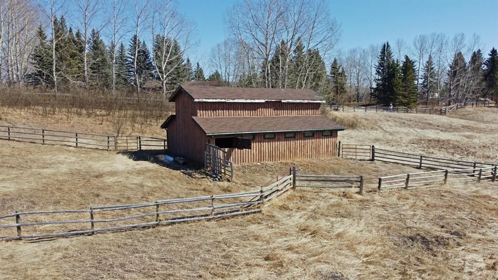 Very special 17.54 acre building opportunity with an existing partially serviced home site, triple car garage and equestrian layout (barn includes 3 boxstalls, 4 tie stalls, tackroom ,second storey hay loft) fenced and cross fenced, large out door riding arena. All this PLUS it FRONTS on with full walk on access to Fish Creek !!! You are going to be amazed at this peaceful valley setting, with it's mature treed landscaped ambience and SW MOUNTAIN VIEWS !! This truly is a unique opportunity that rarely ever presents itself and a location that is second to none just South of Priddis and 22x highway -- only 12 minutes to city shopping.