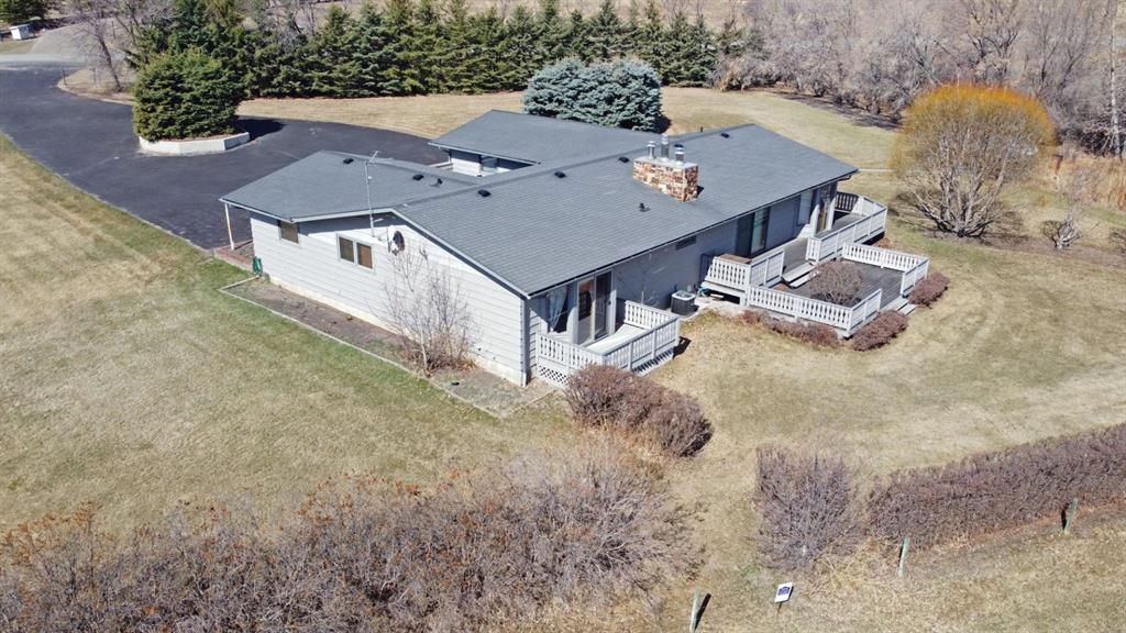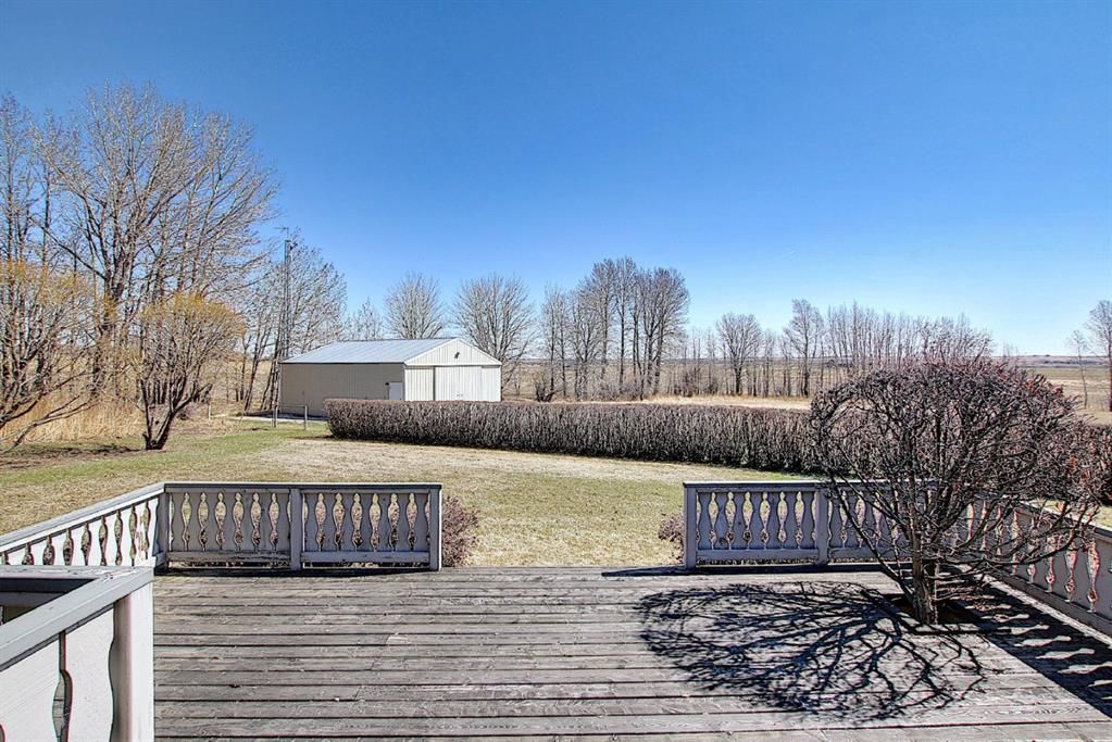 Was $1,100,000. NEW PRICE NOW. --- VACANT ESTATE sale from the original owner ---- 18.5 ACRES. Corner lot with access and street frontage on East, West & North boundary of property !! THE best opportunity possible for a family combination to share adjoining lots or as an owner/investor to sub divide and develop. Really nice quiet location East of Okotoks and highway 2 or an easy 12 minute paved drive to South Calgary. Level hayland/pasture for the horses with a beautifully landscaped (U/G sprinklers, green house) home site surrounded and sheltered with mature trees. 36' X 30' all metal straight wall SHOP. 2134 SQ.FT. air conditioned rancher bungalow with private walled front entry courtyard and jetted spa plus adjoining sauna in the lower level. Vacant... estate sale ....enjoyed by the original family for many happy years and now the next generation's chance to do the same !