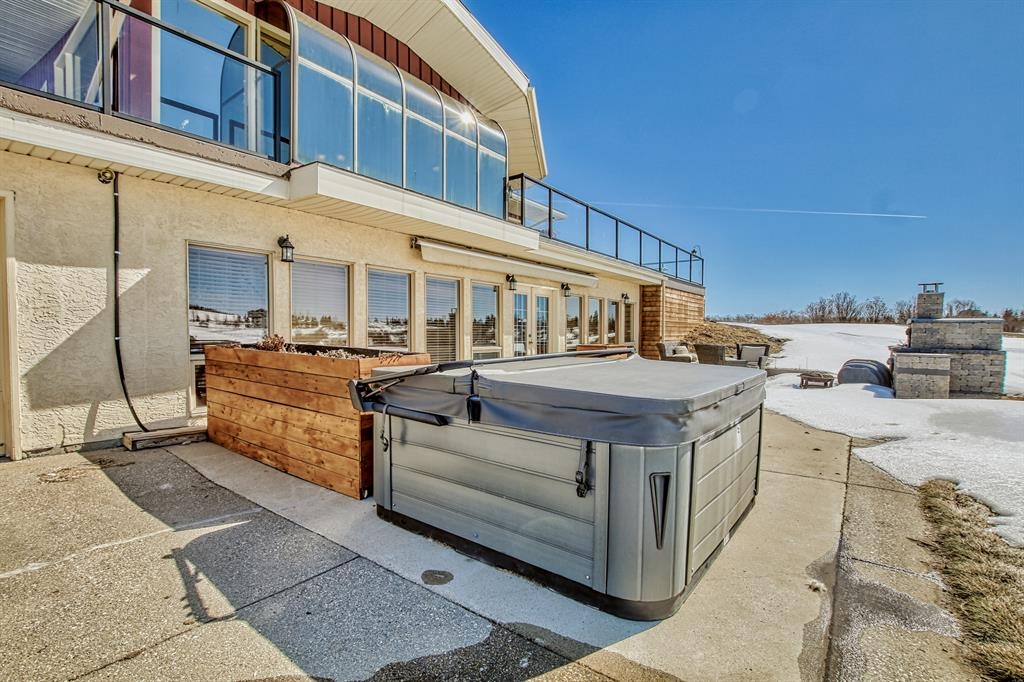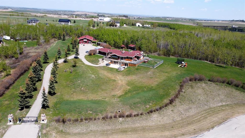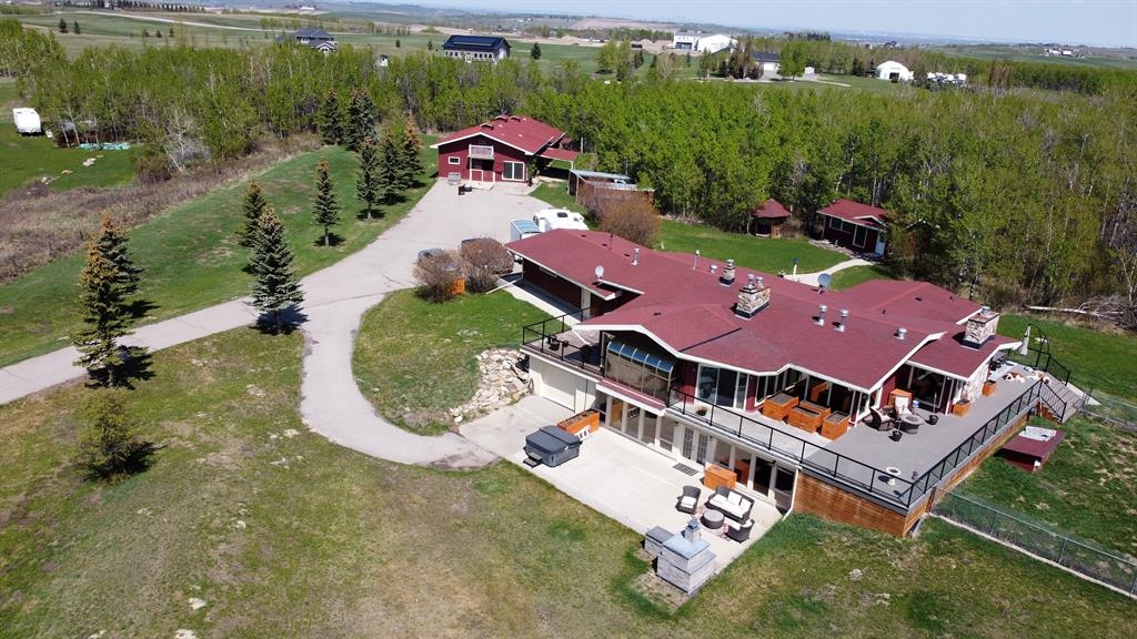 New fresh Spring price *** May 16 th *** ___Surprise … surprise !! Rarely does a new listing become available in this quiet country cul de sac south of Sirocco Golf course and north of Strathcona Tweedsmere/Calgary Polo Club ….. 7.31 Acres in Crocus Meadow Estates with a fully developed walk out ranch style bungalow ( 2259.0 sq.ft. -plus- 2303.1 sq.ft. *** 4562.1 sq.ft. total development. The lower level actually has a second full kitchen that would be ideal for an extended family. Power front entry gate with paved drive. 35’6” X 21’8”- barn. 24’8’ X 17’3’ - Guest cottage or Artist studio with matching Gazebo. Totally sheltered with a complete Sunshine filled South exposure the 36’ X 19’ lower patio boasts a custom fireplace with built in Pizza Oven , spacious lounging/seating area and an enticing hot tub for year round outdoor fun ! Mature trees and landscaping with just the right amount of country size lawns to enjoy further complimented by a forest of native Aspen trees on the north half of the property for privacy and shelter from the weather. No winds to be felt here !! This peaceful Country Estate is available now for you to view. Be the first to call. Thank you for your time and consideration.