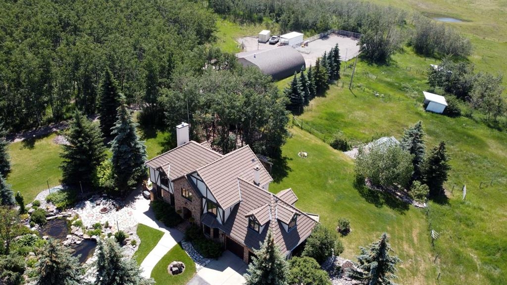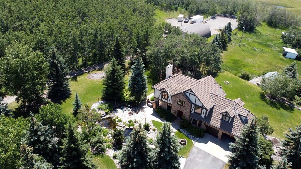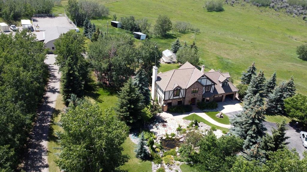 The First Day of Summer *** June 21 *** New Price _____ 5 Star Location and Country Perfect Setting !! 10.01 Acres of trees with a 40' X 60' heated Shop and fenced pasture with shelters,2 stock waters plus outdoor riding arena for the horses. 19' 10" X 13'10" fully serviced heated Green House for the gardener. The landscaped yard has been years in the making with its Lily pond and Waterfall feature, flagstone patio and various ornamental trees/shrubbery to make this a Naturalist's dream come true .... Spring ...Summer and Fall is the time to relax,experience and truly appreciate this enchanting setting ! Walking distance to the unique Granary Road farmers market complex , 5 minutes to Spruce Meadows or 7 minutes to Calgary shopping. This 2 level Traditional family home has been nicely upgraded with an open floor plan, kitchen+granite counter tops, gas range and bathroom remodels. Meticulously cared for and now with the family grown, It's time for you and your family to treasure a future lifetime of memories in the Country ....but ever so City close.