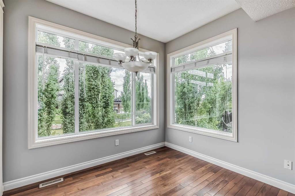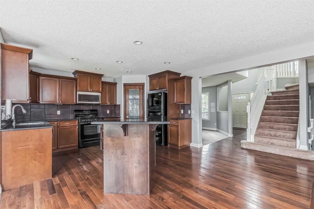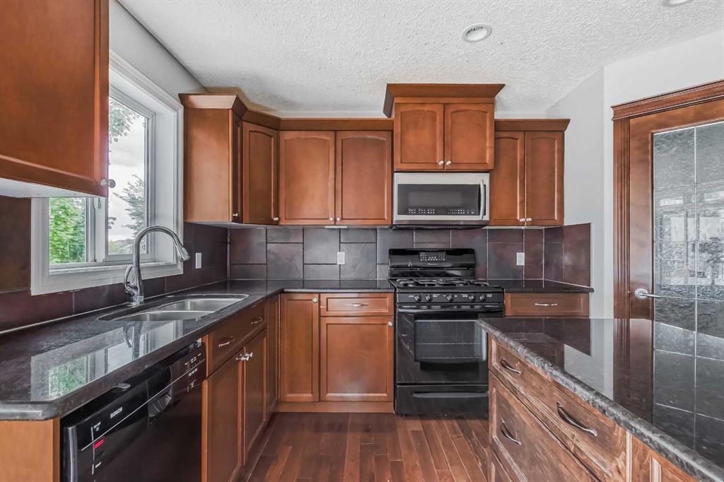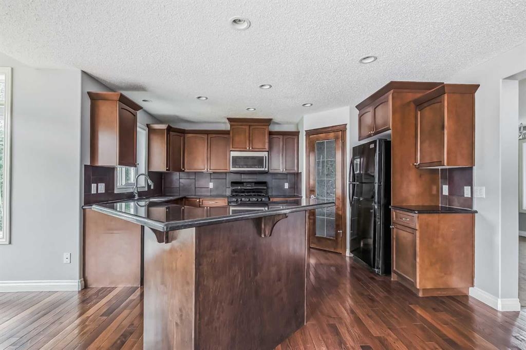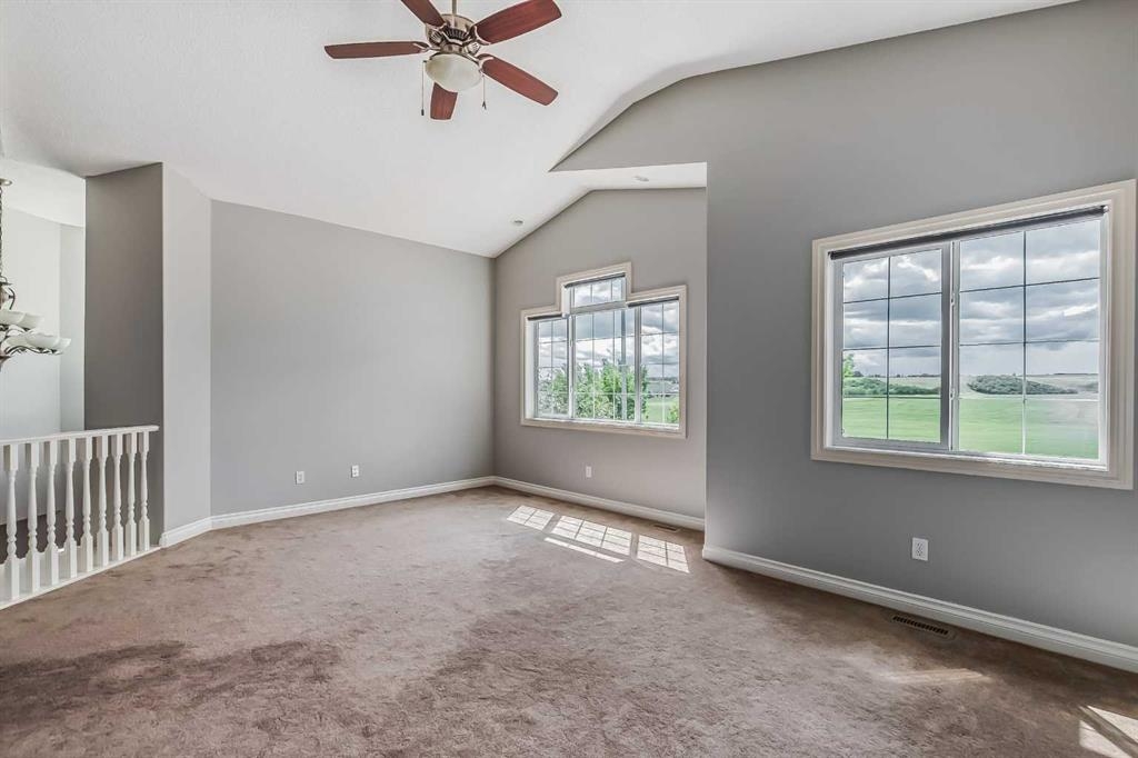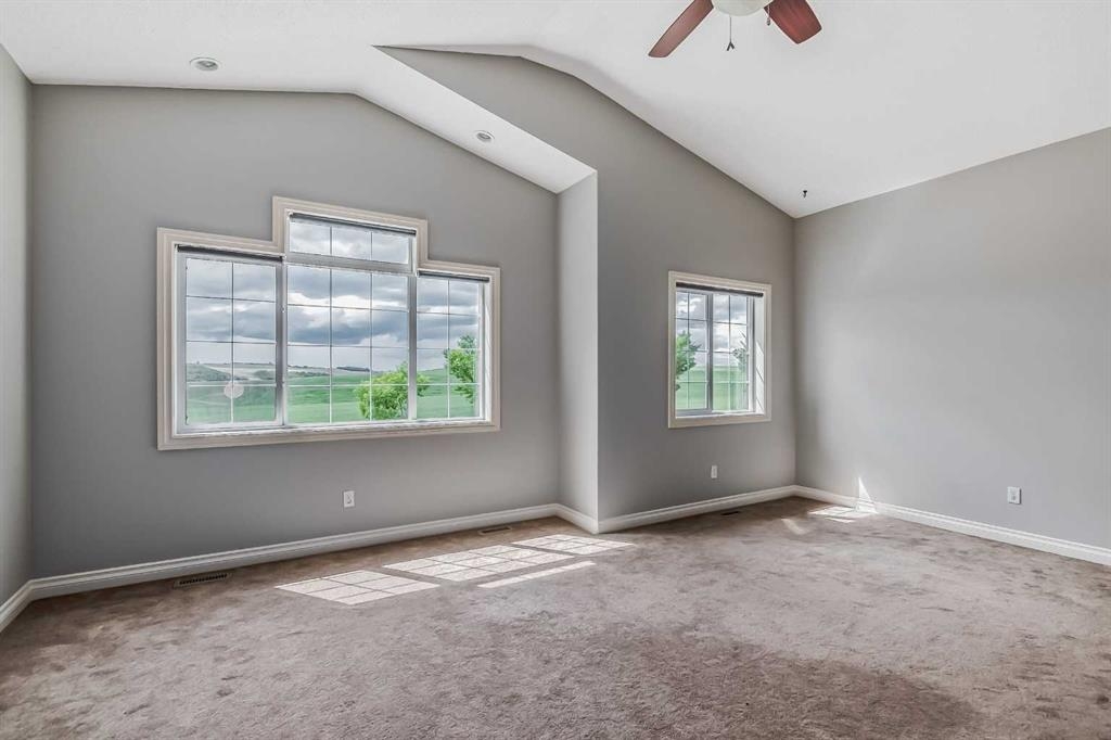 *** Country *** in town living but with open fields and a full panorama view of the Mountains to the west and beautiful Greenbelt pathway for the back view !! Stunning two-storey walkout, fully developed on all levels and in an ideal location. The main level offers a front flex room, open concept living/dining areas with all the bells and whistles (hardwood, granite, gas stove, corner pantry) and a main floor laundry. Upstairs you will find a luxurious master retreat with massive ensuite and its own raised lounge area, two large secondary bedrooms and a spacious vaulted bonus room with views west. Next, head down to the fully completed walk-out lower level, featuring second fireplace and a third full bath. The yard has been lovingly tended, with gorgeous perennial beds and shrubs. It's a short walk to the new Westmount School and the tot lot conveniently located in the greenbelt. This home has it all PLUS it's vacant and move in ready with a BRAND new Fresh painting decor both inside and out *** from the garage door -front porch - balcony to the lower deck/patio !!!